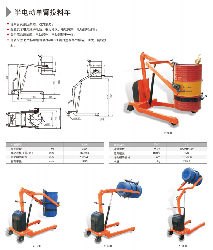 半电动单臂投料车YL300